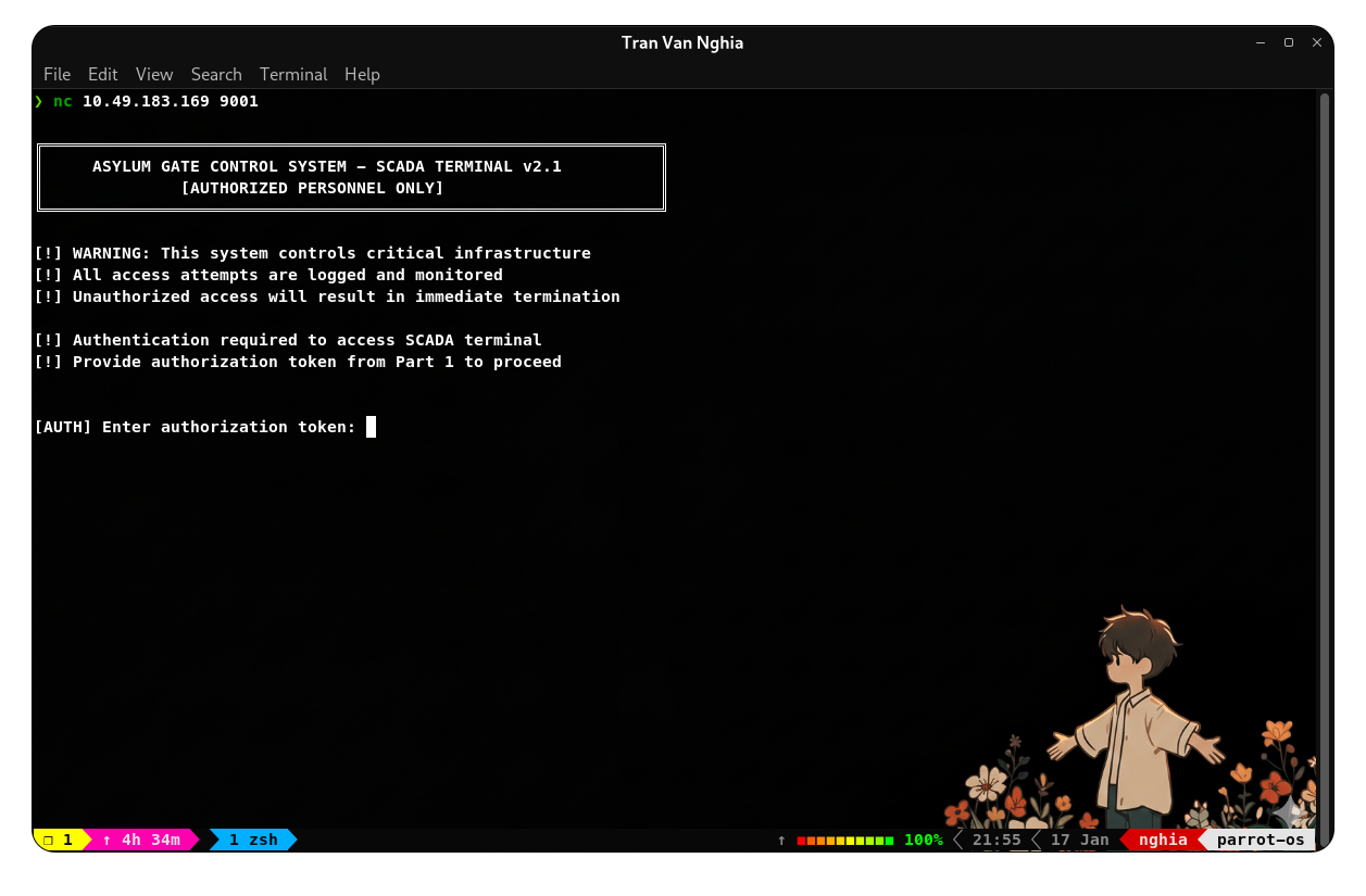 Cổng 9001: SCADA terminal yêu cầu mã xác thực: