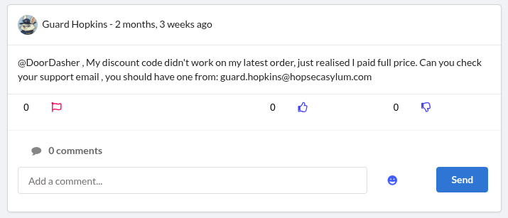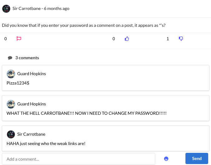 Sau khi tạo một tài khoản trong trang web nằm tại port 8000 trên và đăng nhập thì ta đã thấy luôn 1 địa chỉ email khả nghi được công khai guard.hopkins@hopsecasylum.com: