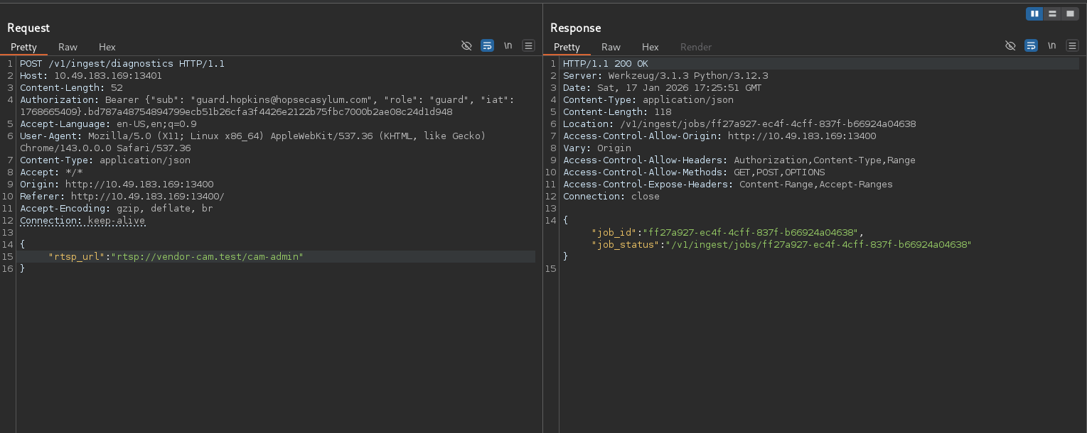 Trong đó có 2 đường dẫn là /v1/ingest/diagnostics , /v1/ingest/jobsvà rtspurl = rtsp://vendor-cam.test/cam-admin