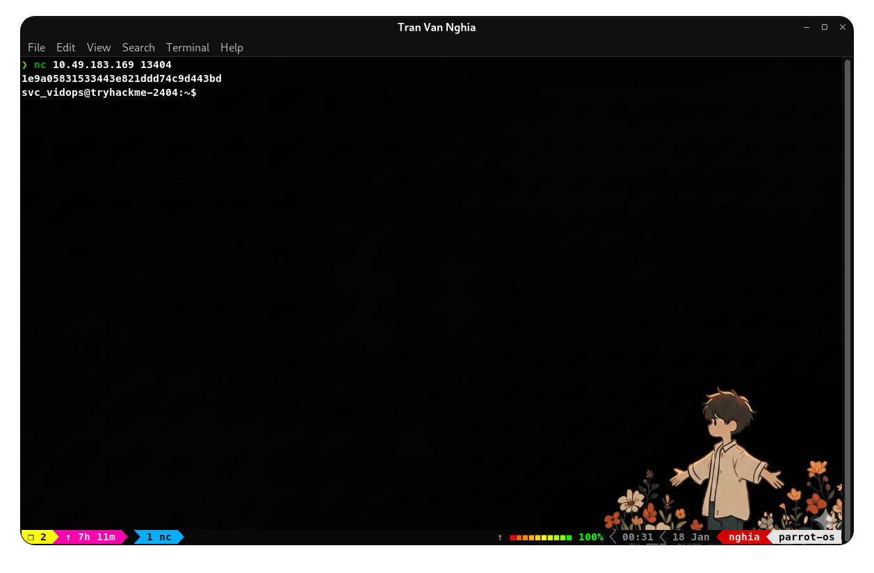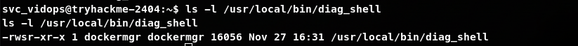 Do không có password của user svc_vidops (do kết nối thông qua token xác thực) nên ta không thể leo thang theo phương pháp Sudoers. Phương án khả thi nhất lúc này là leo thang nhờ việc cấu hình sai quyền SUID.