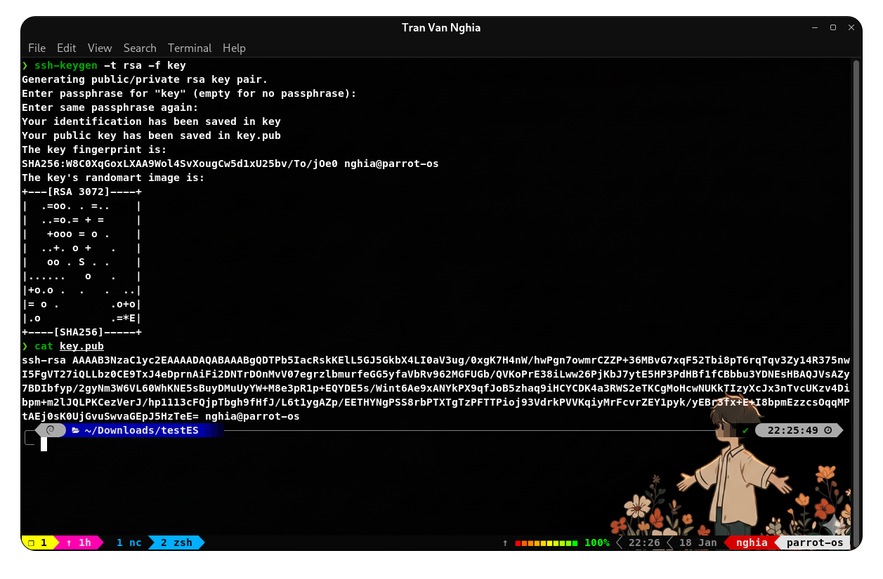 Đầu tiên ta tạo khóa trên máy của mình