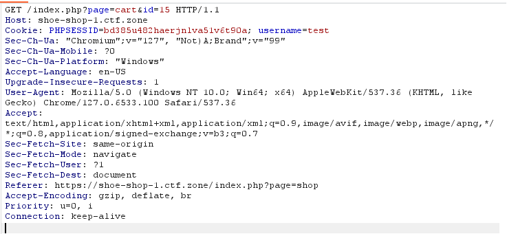 Bắt request trong burp suite ta thấy trong request query có một tham số rất đặc biệt đó là id=15
